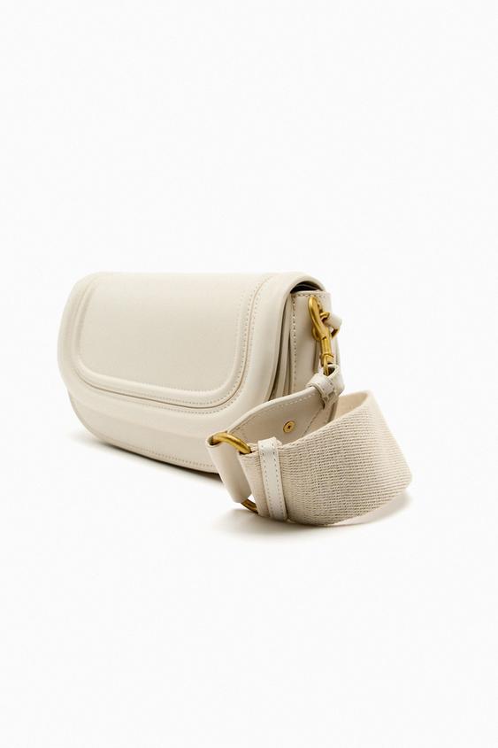 Mala a tiracolo com aba. Asas extraíveis e ajustáveis, uma de ombro em tecido tipo canvas e outra com função mala a tiracolo. Fecho com íman.